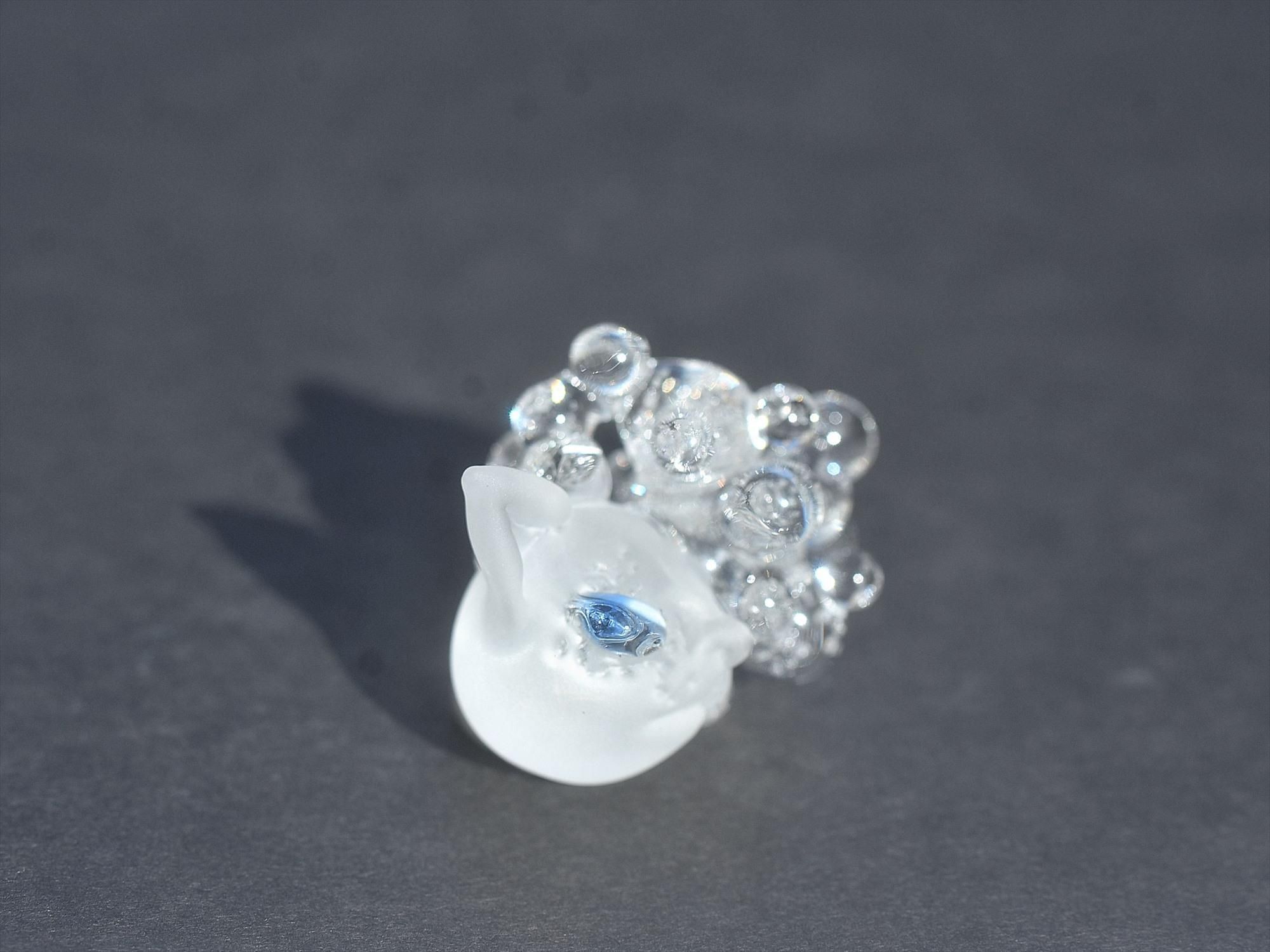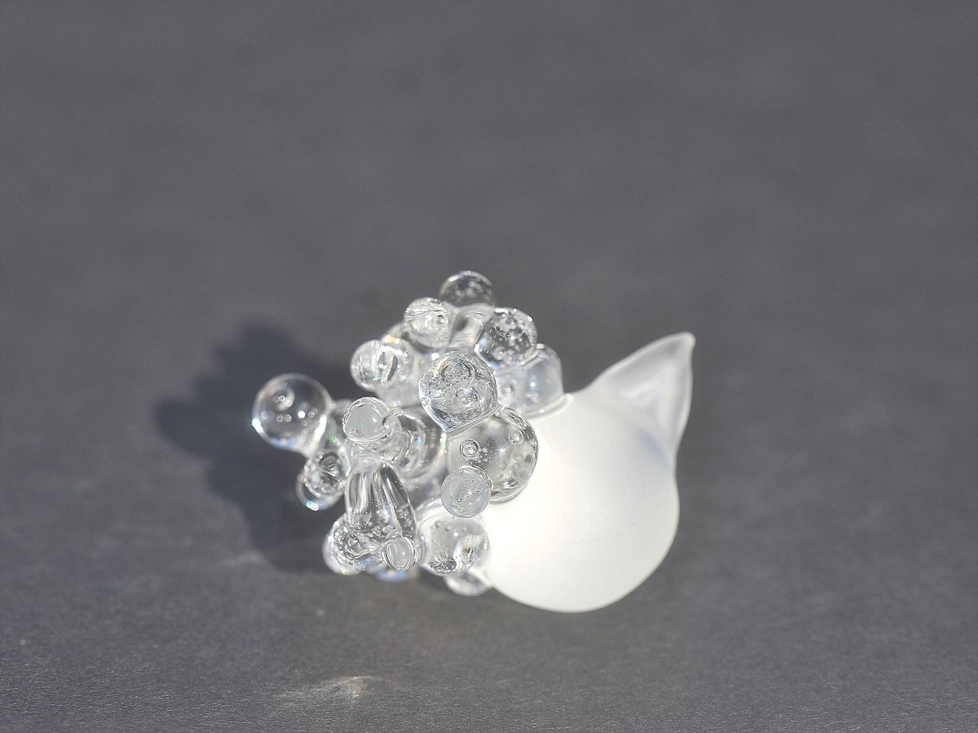 ネコの部分はサンドブラスト加工によりツヤが無く、半分の泡の部分はクリアが協調されているコントラストがなんとも言えません🐈
