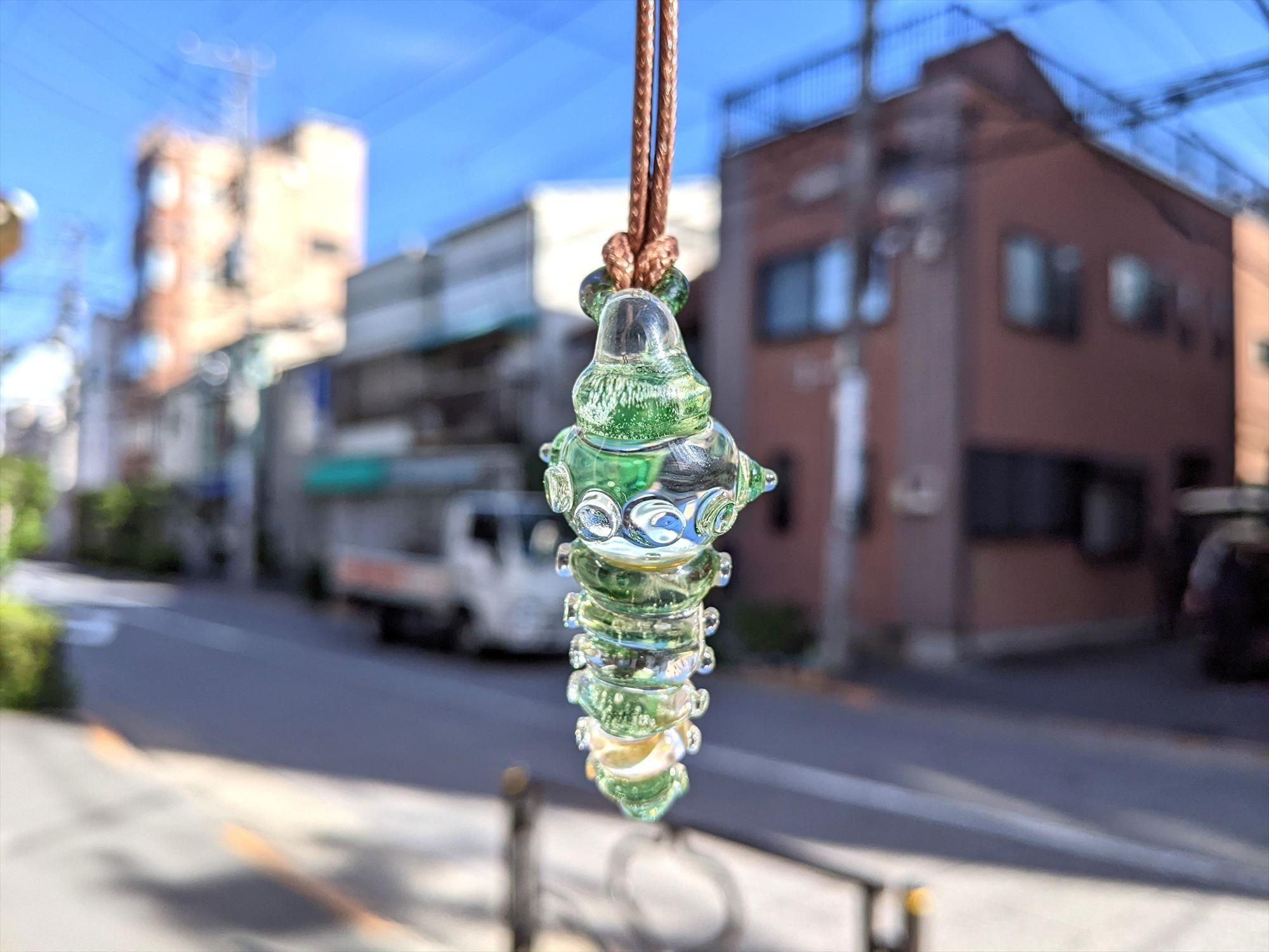 イモムシをガラスで形作ったペンダントです!